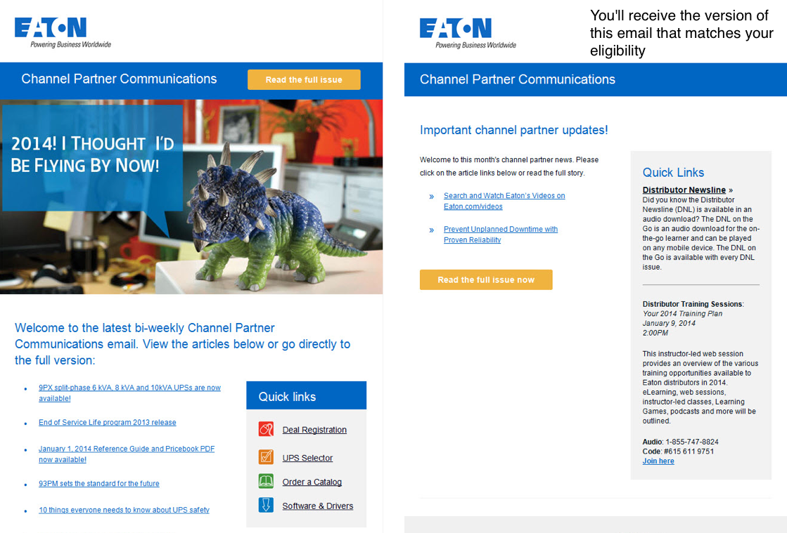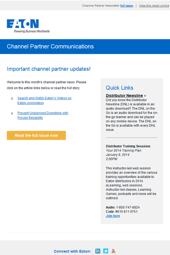 • Customize your Eaton eNews now - so you will receive email communications regarding the specific news and information you are interested in.